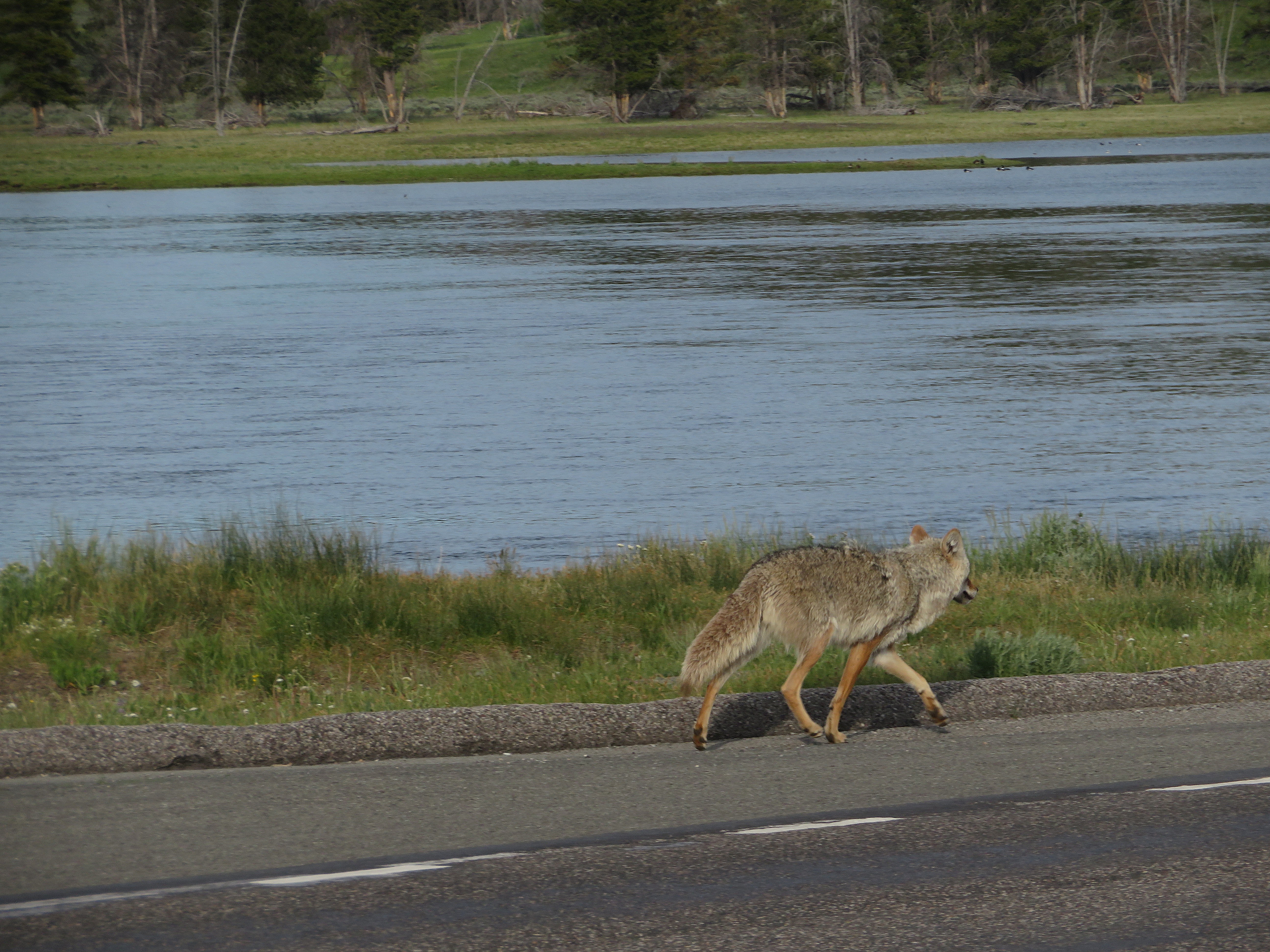 Besides bears, Yellowstone is home to a wide range of land carnivores as well. This includes the beautiful Red Fox, which I had the privilege to see in Lamar Valley on the roadside. I also found a ton of Coyotes in the park, in places like Lamar and Hayden Valleys as well as near Mt. Washburn and on the shores of Yellowstone Lake. In Lamar Valley, I even got to see a family of coyote pups and their dens from a distance as well as multiple Coyotes running and foraging on the side of the road. However, the most famous carnivore in Yellowstone are the Wolves, which have been reintroduced to the wild and thriving in the park since 1995. Now, in places like Lamar Valley and Hayden Valley (where I saw them), you have a good chance of seeing a pack of them together especially at dawn and dusk. Badgers are also fairly common here, and I got so lucky to see a entire family of them crossing the road at the Tower Junction area.
