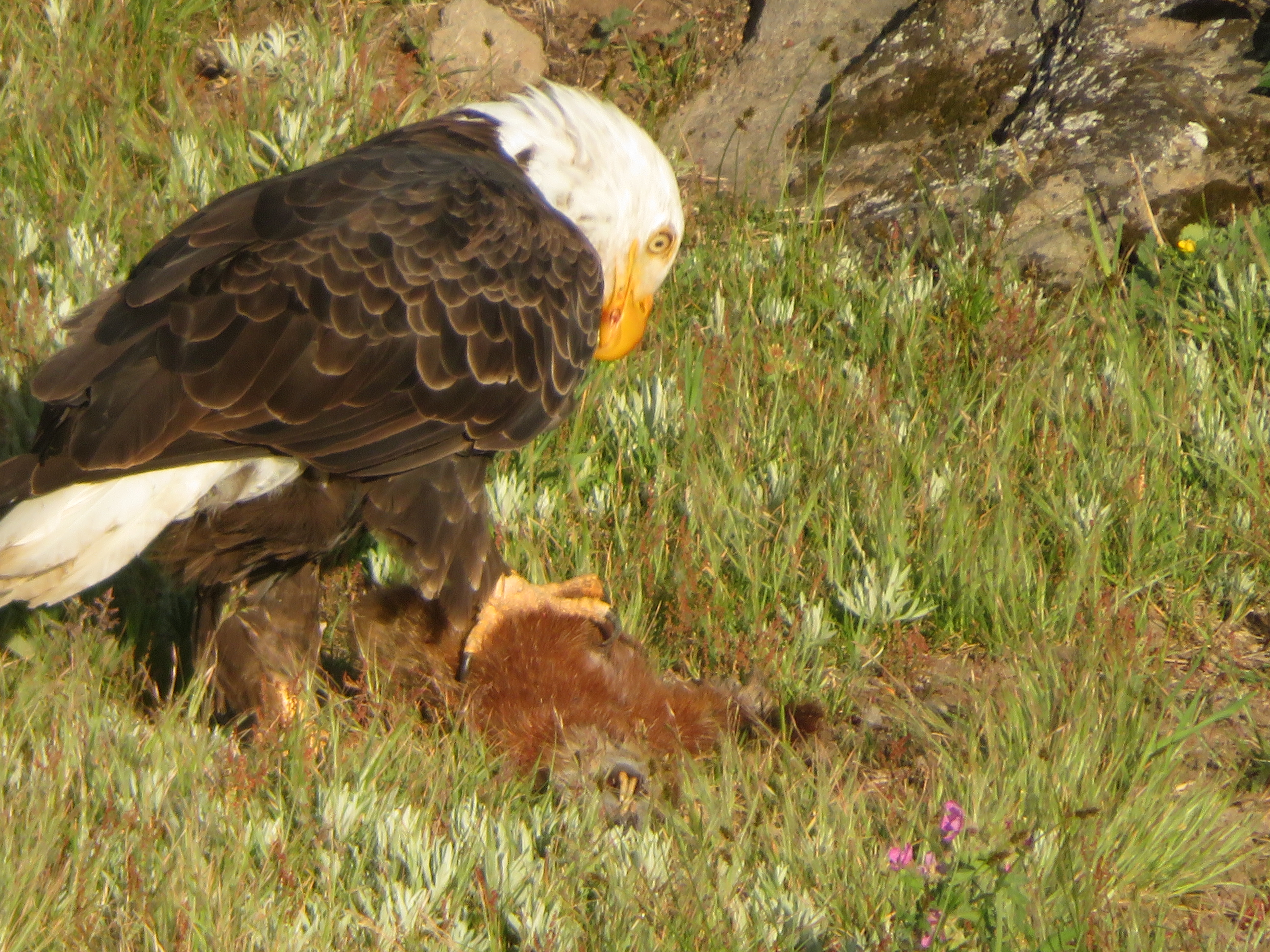 Yellowstone is also home to a wide range of birds. Some birding highlights include an Osprey nest and many Bald Eagles, including one feasting on a Marmot it caught earlier on the shores of Yellowstone Lake. Waterfowl like Canada Geese and Green Winged Teals are also common, and I got to see a wide variety of waterbirds in Hayden Valley near the Yellowstone River. Finally, Golden Eagles are abundant too, and I even got to see a family of Golden Eagles nesting in the cliffs above Lamar Valley.